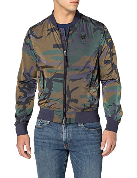 Blauer Giubbini Corti Sfoderato Bordato Blouson Herren, Blau